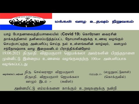 19.06.2021 திருமதி. விஐயகுமார் ஜெயக்கலா அவர்களின் பிறந்தநாளை முன்னிட்டு இன்றைய உணவை வழங்குவதற்கு 100CHF அன்பளிப்பாக வழங்கப்பட்டது...