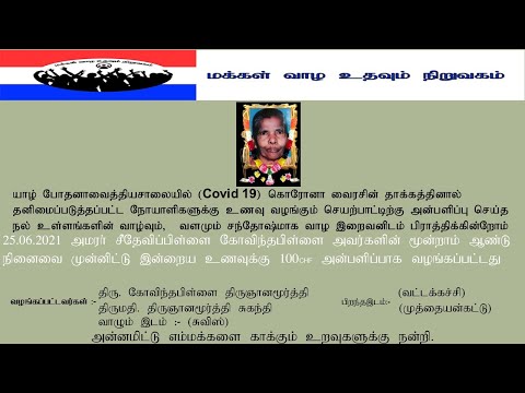 25 06 2021 அமரர் சீதேவிப்பிள்ளை கோவிந்தபிள்ளை அவர்களின் மூன்றாம் ஆண்டு நினைவை முன்னிட்டு இன்றைய உணவு ....