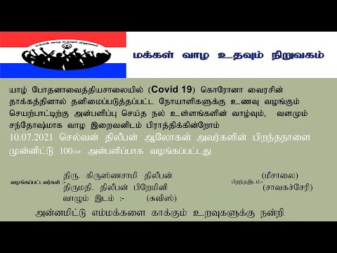 10 07 2021 செல்வன் திலீபன் ஆலோகன் அவர்களின் பிறந்தநாளை முன்னிட்டு 100CHFஅன்பளிப்பாக வழங்கப்பட்டது...