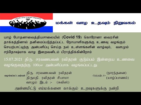 15 07 2021 திரு சரவணபவன் ரவிதரன் குடும்பம் இன்றைய உணவை வழங்குவதற்கு 100CHF அன்பளிப்பாக வழங்க.......