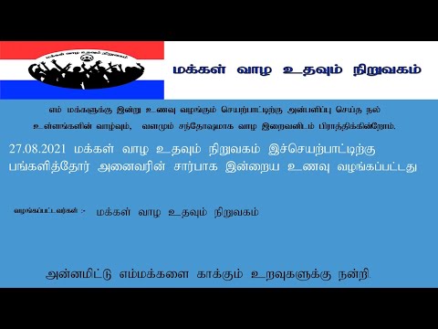 27 08 2021 மக்கள் வாழ உதவும் நிறுவகம் இச்செயற்பாட்டிற்கு பங்களித்தோர் அனைவரின் சார்பாக இன்றைய .....