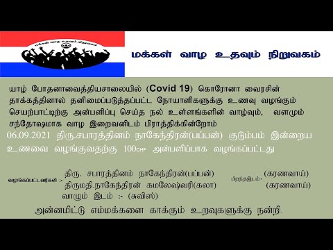 06 09 2021 திரு சபாரத்தினம் நாகேந்திரன்பப்பன் குடும்பம் இன்றைய உணவை வழங்குவதற்கு 100ஊர்கு அன்பளி..
