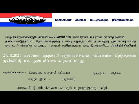 24 10 2021 செல்வன் கந்தசாமி ஜெனார்த்தனன் அவர்களின் பிறந்தநாளை முன்னிட்டு 100€ அன்பளிப்பாக...