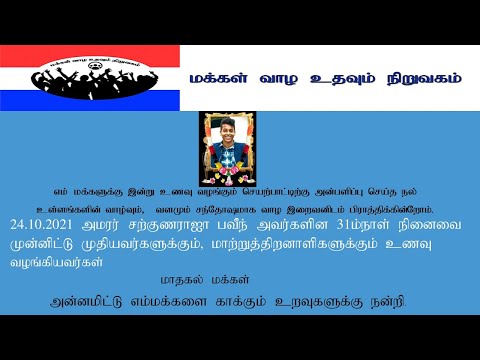 24 10 2021 அமரர் சற்குணராசா பவீந் அவர்களின 31ம்நாள் நினைவை முன்னிட்டு முதியவர்களுக்கும், .......