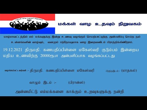 19 12 2021 திருமதி கணபதிப்பிள்ளை மகேஸ்வரி குடும்பம் இன்றைய மதிய உணவிற்கு .........