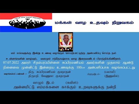 07 07 2022 அமரர் சிதம்பரப்பிள்ளை சுப்பிரமணியம் அவர்களின் முதலாம் ஆண்டு நினைவை முன்னிட்டு