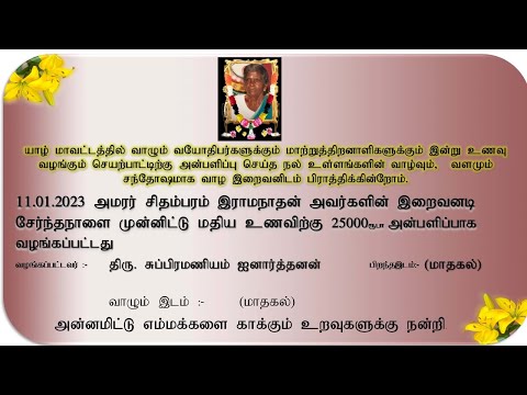 11 01 2023 அமரர் சிதம்பரம் இராமநாதன் அவர்களின் இறைவனடி சேர்ந்தநாளை முன்னிட்டு
