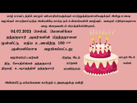 செல்வி மௌனிக்கா நந்தகுமார் அவர்களின் பிறந்தநாளை முன்னிட்டு மதிய உணவிற்கு அன்பளிப்